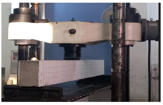 All beams were tested under a three-point bending test as simply supported beams using 1000 kN Shimadzu UTM as per ASTM C78-18 [