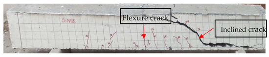 The nomenclature of beams comprised three letters. The first letter denotes the type of concrete, e.g., OPCC (O) and GPC (G). The second letter denotes whether the beams were without steel stirrups (N) or with steel stirrups (S). The third letter denotes the