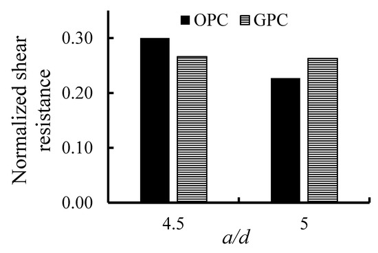 36] found that in OPC beams the shear resistance was increased by 6–28% by decreasing the