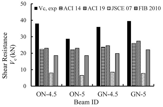 37] reported that the shear resistance of OPC beams was reduced by 24% with increasing