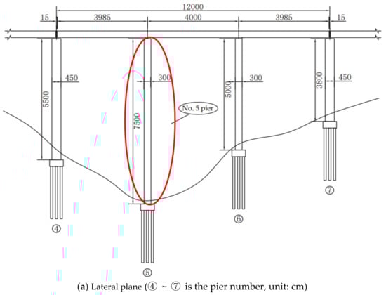 Pier No. 5 structural design drawing (frontal plane) (unit: cm).