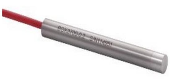 The specific test instrument was an embedded thermometer (model: BGK-3700-0.2) provided by Geokon Instruments (Beijing) Co., Ltd. As shown in Figure 4, the core component of embedded thermometer adopts semiconductor thermistor sensor, and the measurement range was −30 °C ~ +70 °C, with a test accuracy of 0.2 °C. This instrument included a BGK-MICRO-40 automatic data acquisition instrument provided by Geokon Instruments (Beijing) Co., Ltd., and the supporting BGK-Logger software system was based on the WINDOWS working platform, which can read, save, and process the measurement data quickly and conveniently, as shown in Figure 5. The acquisition device also supported wireless transmission. The thermometer’s data signal was sent using BGK-187V3 professional cable transmission because this type of cable has superior waterproof performance, good data signal stability, and high precision.