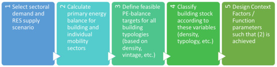 As a next step, the share of PEDs in the building sector and the other district typologies are classified and their performance is estimated depending on density, as is shown in Table 5. Note that this is a first approximation and can and should be detailed as necessary to reflect the desired context.