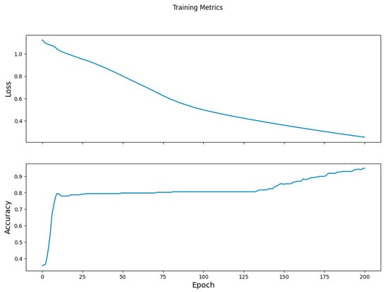The training accuracy, however, measures how often the model can correctly predict the output of the training examples. It is calculated as the number of correct predictions divided by the number of training examples. The training accuracy is essential to monitor during training to ensure that the model is balanced with the training data, which would result in poor performance regarding new, unseen data. During the training phase, the training loss and accuracy are plotted to visualise how they change as the model is being trained. This allows us to monitor the model’s progress and make necessary adjustments. As the model becomes more accurate and the training loss decreases over time, it is generally a good indication that the model will improve and perform well on new data. Figure 4 depicts the training loss and accuracy of the proposed model.