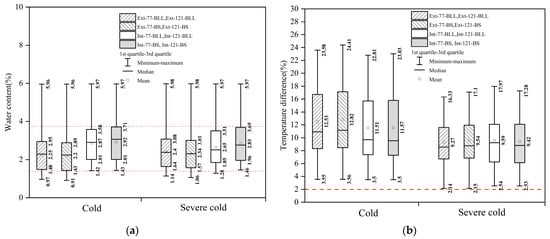 - After analyzing the WC of BLL and BS, the WCs of the 12 walls of BLL and BS were below 20%, showing that BLL and BS can be used in envelopes, and that the WC of BS is lower than that of BLL.