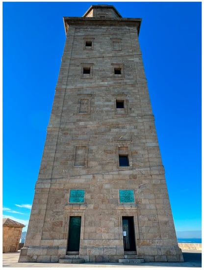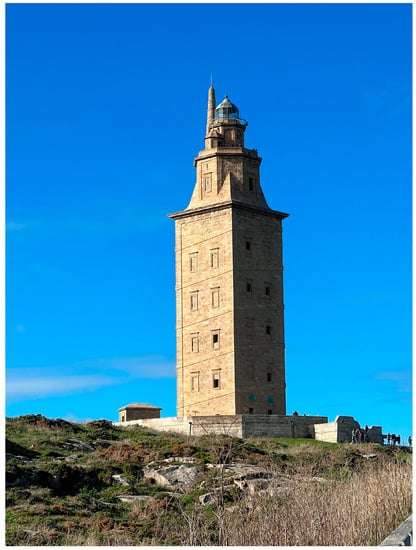 - Concello da Coruña (nd). Two Thousand Years of Light. Available online: https://www.coruna.gal/the-tower/en/discover-the-tower/two-thousand-years-of-light/ancient-times?argIdioma=en (accessed on 1 March 2023).