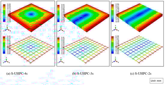 | Four edges (4s) | 1:0.160 | 1:0.485 | UHPC slabs respond (1) identically in the case of 4s and 3s models with regard to displacement and damage; (2) more contributes to control displacement than damage for the 2s model. |