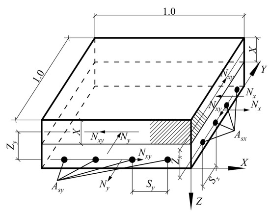 - Asx, Asy—reinforcement cross-sectional areas (x- and y-axis)