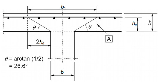 The calculation model for the punching strength test according to [4], taking into account the designations in this paper, is shown in Figure 4. The punching resistance of a slab without transverse reinforcement has to be determined at the face of the column and at the test perimeter .