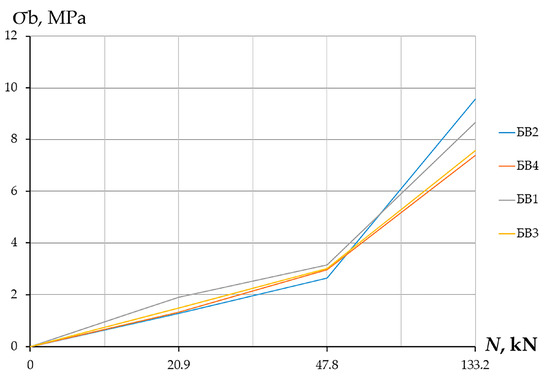 To determine the maximum possible emerging stresses, it is necessary to load the plate with an ultimate force, according to Formula (6). When a pylon is loaded with such a force, a stress concentration occurs in its immediate vicinity. Therefore, it is necessary to bring the loading of the pylon’s loading area into compliance with the loading of the above pylon punching zone.