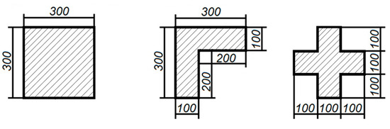 In [2], three different shapes of pylons were investigated and tested on laboratory benches: square with 300 × 300 mm sides, angular with 300 mm length and 100 mm-width sides, and cruciform with 100 mm-width and 300 mm-length sides.