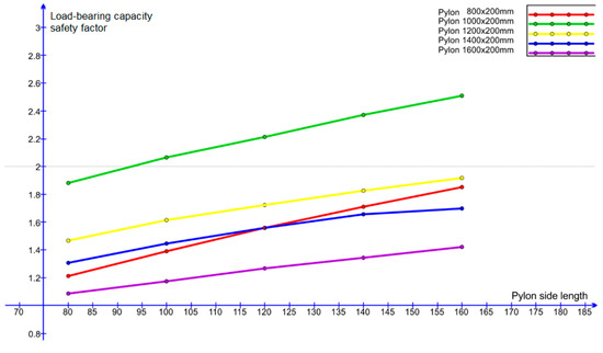- the cross-sectional dimensions of the pylons are assumed to be 200 × 800, 200 × 1000, 200 × 1200, 200 × 1400, and 200 × 1600 mm;