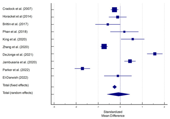 | [43]—U.S. | 29 | 134 | 163 | −0.117 | 0.204 | −0.520 to 0.286 | 5.20 | 10.07 | ||
