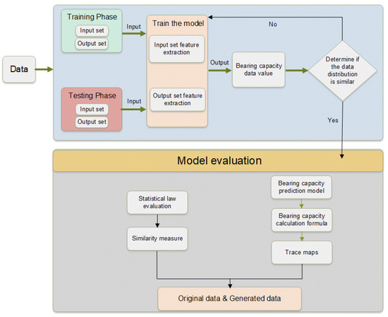 Figure 8 shows the cumulative distribution function curve of the bearing capacity of the bearing capacity prediction model compared with the original data. The parameter value is displayed on the horizontal axis, while the cumulative probability is displayed on the vertical axis. As shown in Figure 8, the cumulative 122 distribution function curves of the data generated by the bearing capacity prediction model are basically consistent with the 122 original data curves.