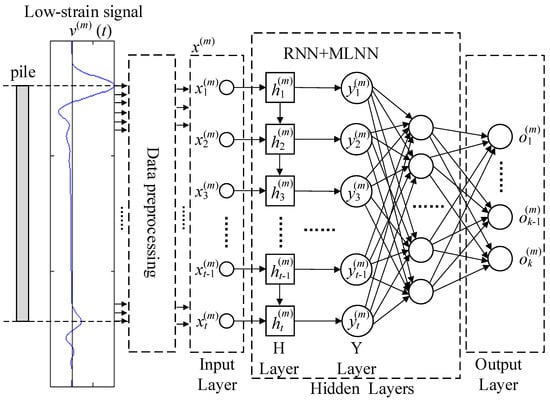 - Input data characteristics: In this stage, the research mainly focuses on the simple combination of time series signals. The input features obtained from the time domain signals will also lose some information details due to the sampling interval. Subsequently, some experts in the foundation pile test are needed to help establish a data feature selection mechanism.