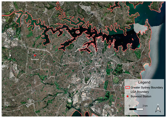 For the purpose of testing the new node-place model and demonstrating its effectiveness, the Burwood station area in Sydney, Australia was selected as a case study in this research. The Burwood Station was built in the year of 1855 to serve the railway from Sydney to Parramatta [36]. At the time, Burwood Train Station was one of only four train stations in existence in Sydney, which highlights the strategic importance of the study area [36]. Burwood is situated to the west of Sydney’s CBD, at a distance of approximately 11 km (Figure 2). Burwood Station has become a crucial transport hub, connecting Sydney’s CBD and Parramatta (Sydney West) as well as serving as a gateway to the north.