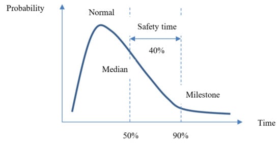The Beta Distribution indicates that there is a high probability (−1σ ÷ +1σ) of completing a task in half of the calculated time (50%) based on the initial formula, which includes possible events that may delay the execution. Planners use these estimations as safe measures to mitigate uncertainty during the project’s development. Goldratt iterates that, based on Beta Distribution, there is a 50% chance (optimistic estimation) of finishing a task earlier than the timeline (pessimistic estimation 90%) calculated with the CPM method [