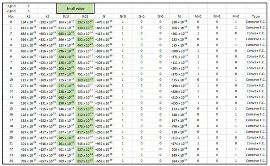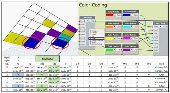 One example of double-curved surfaces [59], a hyperbolic paraboloid, was classified into two areas with both concave and convex feature-curve areas through the program flow, CPMGC (see Figure 8).