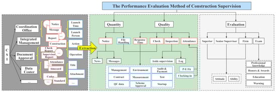 As the essential phase of a building or infrastructure project, construction accounts for the most cost, time, and resources planning due to the safeguarding, fabrication, and quality control during this period. The construction supervisor, a key component of a project management system, is important for a successful construction process []. The construction supervisors have duties related to process management, quality management, safety management, and other various tasks during a construction period, and should accept the commission organized by either the supervisor or enterprise []. These duties of construction supervisors contain several typical categories [], such as activity monitoring, safeguarding, planning the establishment, coordination, reviewing of plans, and assisting. In addition, the construction supervisors must be qualified for education, certification, and experience. Since the staff of the project supervision department are actively involved in site construction, accurate evaluation of the performance and dynamic assessment of individuals becomes a follow-up task.
