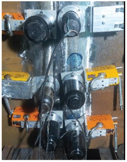The transducers in the high-energy ultrasound equipment are shown in Figure 6. Figure 7 shows the field operation diagram of high-energy ultrasonic to eliminate residual stress.