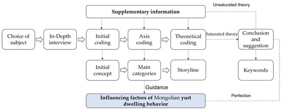 Until now, there has been no special study on yurt dwelling behavior, especially the study of the relationship between the yurt and dwelling behavior, to explore yurt dwelling and its lifestyle. Therefore, this study applied grounded theory to construct a theoretical model of the factors affecting the residence behavior of Mongolian herders, analyzed the relationship between the residence behavior, environment, and Mongolian herdsmen, and explored the development of yurts and residential life from the perspective of behavioral research. The structure of this article is as follows: Section 2 sorts out the data of the participants collected in the interview. In Section 3, five categories are summarized and the relationship between them is explained. Section 4 discusses the relationship between the various categories. The paper ends with some conclusions and ideas for further works.