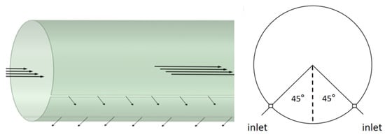 The bag air duct is installed by lifting, and a row of air inlets is arranged on both sides of the duct in a 45° downward direction, equivalent to two 15 mm wide slits. The bag air duct supply system model is shown in