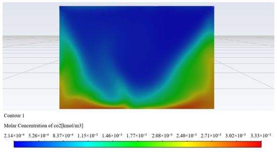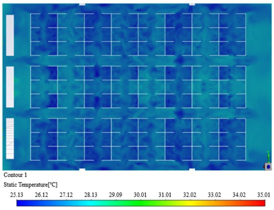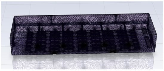 Because the simulated gymnasium has a large geometric space, many air supplies and exhaust outlets, and the sizes of the air supply and exhaust outlets are smaller than that of the entire gymnasium, the difference between the maximum and minimum geometric dimensions is huge, which would inevitably lead to the establishment of too-dense mesh during simulation. Too-dense mesh often leads to difficulty in fast implementation of the calculation, and even difficulty in the convergence of results. Therefore, in combination with the structural symmetry of the exhibition hall, the east–west center is the axis of symmetry, and half of the space is taken as the simulation object. This can not only ensure the accuracy and reliability of the simulation experiment, but also allow the whole simulation process to become efficient and fast.