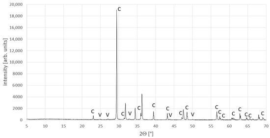 Results of the XRD analysis of the precipitation (C = Calcite, V = Vaterite).
