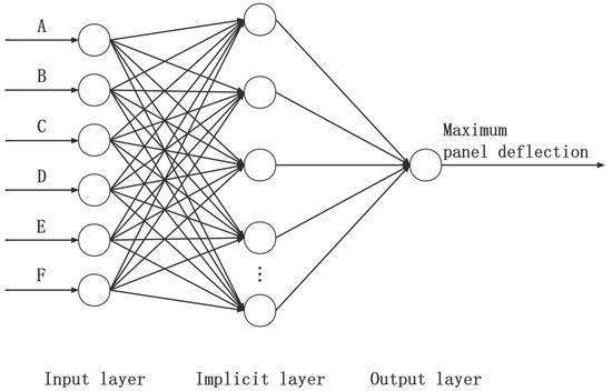 In this paper, the six orthogonal test factors in Table 10 are used as the input layer of the neural network, and the maximum deflection value of the panel of AAF is the output layer of the neural network. The structure of the BP neural network prediction model is shown in Figure 7.
