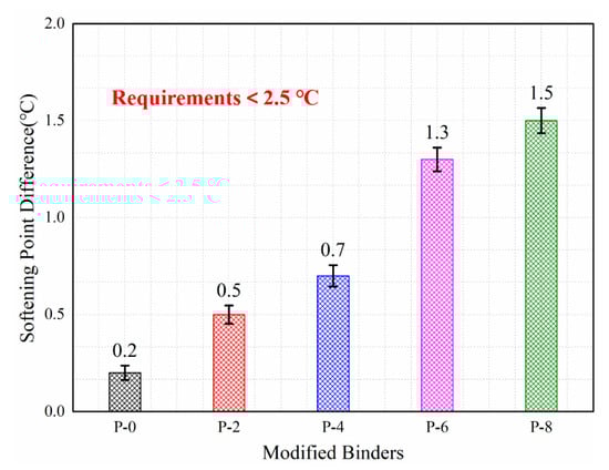Softening point difference of polyolefin-modified asphalt.