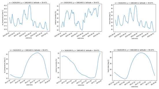 After calculating the wind chill index for the entire modeled period, the evolution of the heat index was analyzed and the day with the maximum wind chill value, 27 August 2010, was selected (Figure 8).