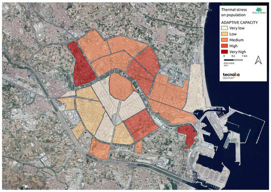 Results of the vulnerability assessment of the functional areas of València against thermal stress—Adaptive Capacity. Source: Own elaboration.