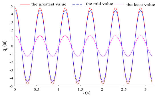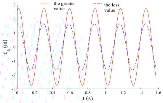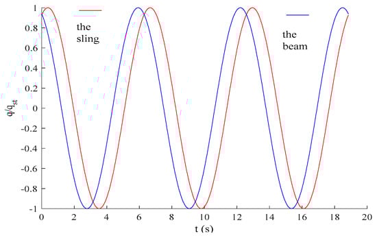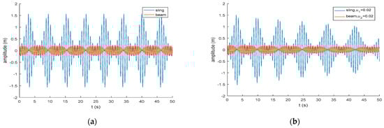- Without damping, free vibration of the combination system was periodical, stable, and bounded. The total energy of the system was constant and transferred among the sling and the beam, which had a typical characteristic of a “beat.” With damping, the total energy of the combination system was gradually dissipated. Different damping coefficients of the combination system could obtain different attenuation laws of amplitude; thus, we could adjust different damping coefficients to change the attenuation law of amplitudes of the combination system.