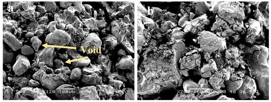 Figure 11a, the fine particle distribution and the voids were clear, indicating less amount of bio-binder was added that resulted in weaker bonds [