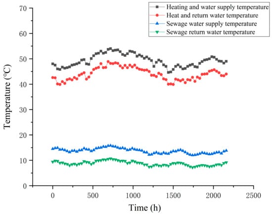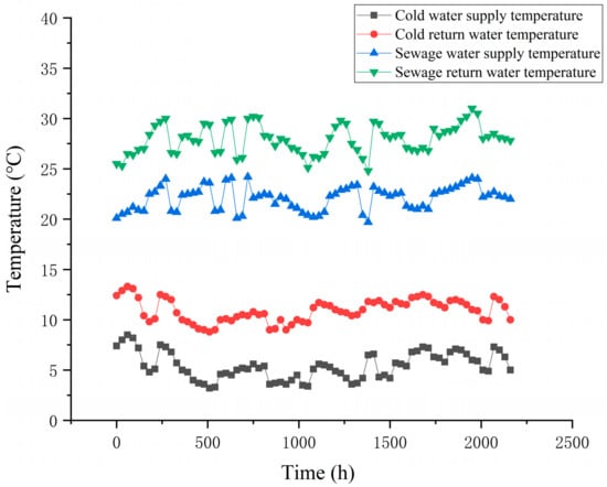 - The temperature of municipal sewage was 12~15.8 °C in winter and 19.7~24.2 °C in summer, which was very suitable as a low-level cooling and heating source for heat pump systems;
