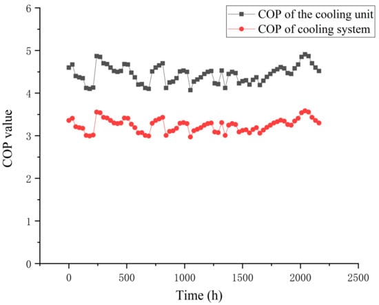 - The system operated stably in winter and summer during the test period, with an average heat supply of 1266.1 kW and an average power consumption of 321.91 kW in winter, and an average cooling capacity of 1488.97 kW and an average power consumption of 335.6 kW in summer;