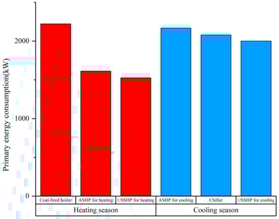 - The energy efficiency analysis shows that the energy consumption of sewage source heat pump systems in winter is 68.66% of that of traditional coal-fired boilers and 94.5% of that of air source heat pump systems. The energy consumption in summer is 96.27% of that of a chiller and cooling tower system and 92.31% of that of an air source heat pump system. The results show that the sewage source heat pump technology has a remarkable energy-saving effect. Through the economic benefit analysis, it is calculated that the operation cost of the heat pump system can be reduced by 17,377.9 yuan per year. Through the analysis of environmental benefits, the use of a sewage source heat pump system can reduce CO2, NOx, SOx, and dust emissions; the CO2 emission reduction effect is the most significant;