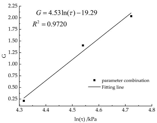 According to Figure 9, G increases with the increase of ln(τ), showing a good linear relationship, as shown in Equation (4):