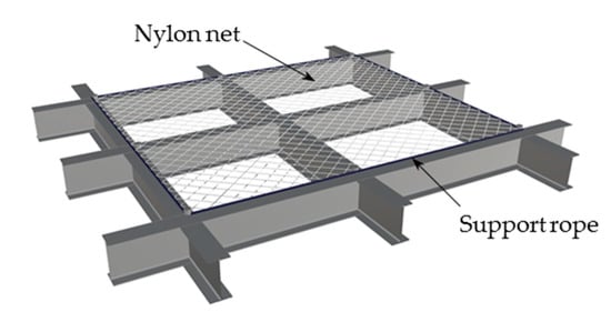 - Eulogio, E.S.; Más, R.I. Energy Absorption of Safety Nets in Building Construction [C/OL]//Structures under Shock and Impact the New Forest; WIT Press: Southampton, UK, 2006; pp. 421–429. [Google Scholar]