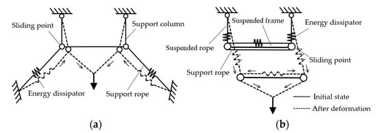- These simulations confirmed that compared with the system without an energy dissipation mechanism, the system with a tensile yield energy dissipation mechanism can reduce the internal force of its key components by about 60% and increase the anti-falling impact capacity more than six times.