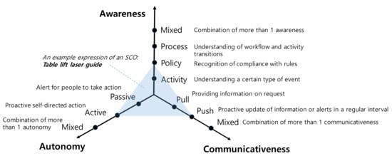- Five SCOs were developed to enhance safety and efficiency at construction sites, including fire detection, operator position monitoring, safety hook fastening detection, opening detection, and table lift laser guidance. The efficacy and technical value of these SCOs were evaluated using the tri-axial diagram method. Three key factors, awareness, autonomy, and communicativeness, were empirically evaluated. Results showed improved awareness and autonomy compared to previous studies’ smart construction objects, with effective information push and policy awareness.