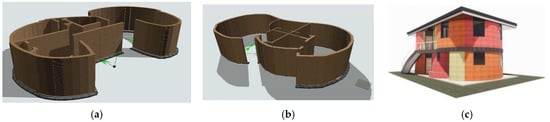 It should be noted that this study considers that a mobile robot must settle in a stationary position to execute a continuous trajectory and then move to another location to print walls. Therefore, the robot’s position and sequence of locations are essential aspects to be considered when printing a building. The present study considered two residential buildings whose characteristics are shown in Table 1.