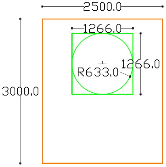 Accordingly, the possible mobile robot locations were analyzed, looking for the best positions that minimized the displacements and printed the entire structure. The robot’s range and dimensions were known [8] and are shown in Figure 3.
