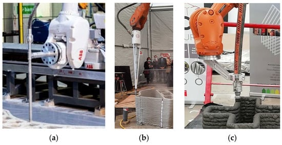 Three-dimensional printing is a technology that performs layered execution processes independent of the material used or a specific application. The American Society for Testing and Materials (ASTM) defines it as integrating materials to produce objects from a 3D data model, generally layer by layer, as opposed to traditional subtractive or assembly manufacturing methods [1,2]. This technology, which is applied to concrete printing using robots and integrative software, allows the creation of various geometric structures [3]. Hence, it is a technique that has revolutionized the creation of several products, processes, and services, showing its potential to be applied in a wide range of disciplines [4].