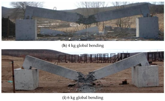 - Nagata, M.; Beppu, M.; Ichino, H.; Matsuzawa, R. A fundamental investigation of reinforced concrete beams subjected to close-in explosion. Int. J. Prot. Struct. 2018, 9, 174–198. [Google Scholar] [CrossRef]