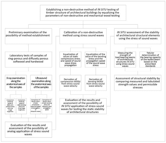 To establish the NDT method for assessment of the quality of timber structural elements of architectural heritage buildings, all the given conditions were met according to the postulates of scientific research. This claim is based on consistently cited scientific facts related to the chemical and anatomical structure of wood, as well as the physical and mechanical properties of wood—therefore also on the laws in the behavior of wood as a material, on which the plan was conceived, and this research was carried out.