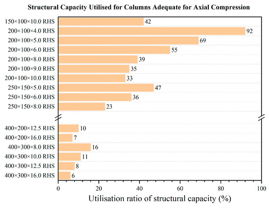 Therefore, the nominal member capacity shall be obtained according to Equation (16). By comparing the of the selected section with N and the optimal , the calculation loop is capable of finding the optimal structure that provides the capacity with minimal redundancy (highest structural capacity utilized).