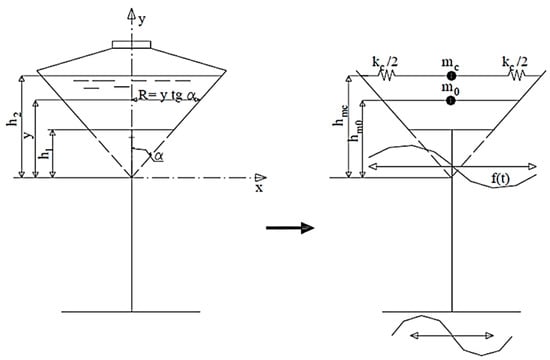 - Sweedan, A.M.I.; El Damatty, A.A. Equivalent models of pure conical tanks under vertical ground excitation. J. Struct. Eng. 2005, 131, 725–733. [Google Scholar] [CrossRef]
