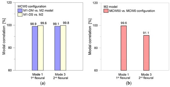 - For the acoustic-based strategy and geometrically refined description of structural components (M2 model), the best correlation was observed towards both experimental and analytical vibration frequencies. Additionally, further considerations were made possible in terms of modal correlation of corresponding vibration shapes, including FSI phenomena.