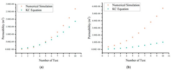 - The KC equation yielded different results than numerical simulations for the permeability of the porous medium. The permeability calculated through numerical simulation is more consistent with the actual situation;